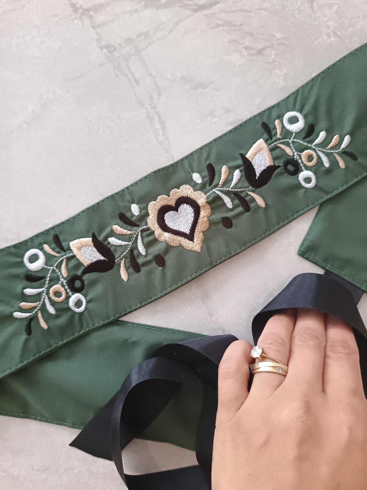 Nádherný, výrazný a zároveň elegantný – tento dámsky vyšívaný folklórny opasok v olivovej farbe je dokonalým doplnkom pre ženy, ktoré milujú tradičnú krásu v modernom prevedení.
