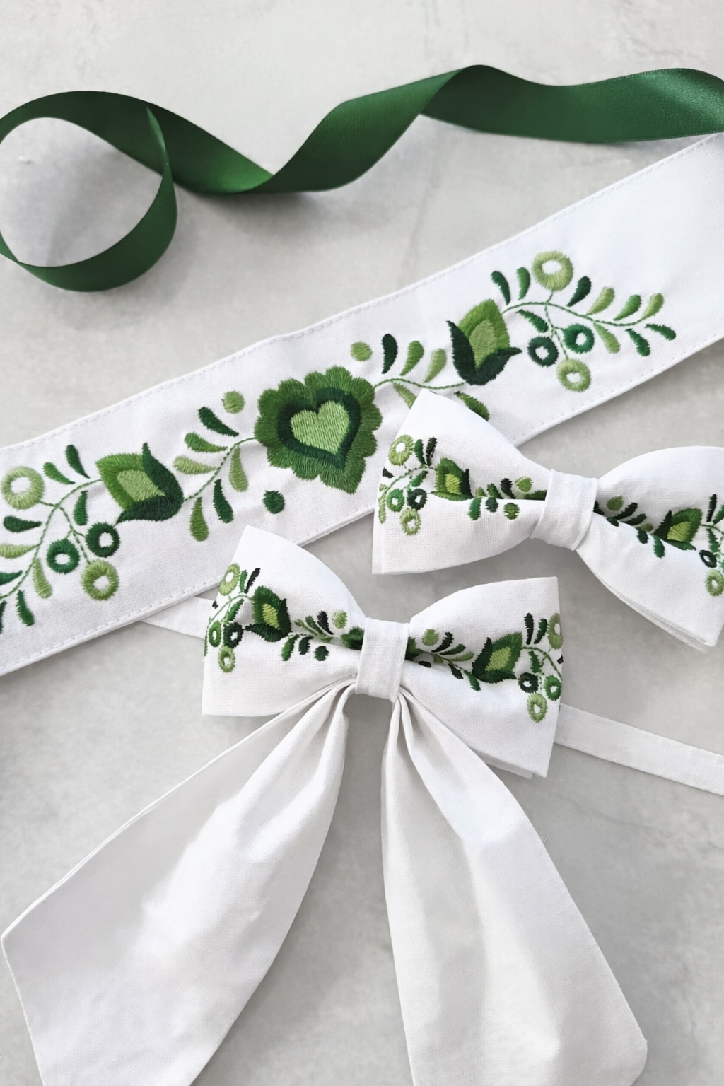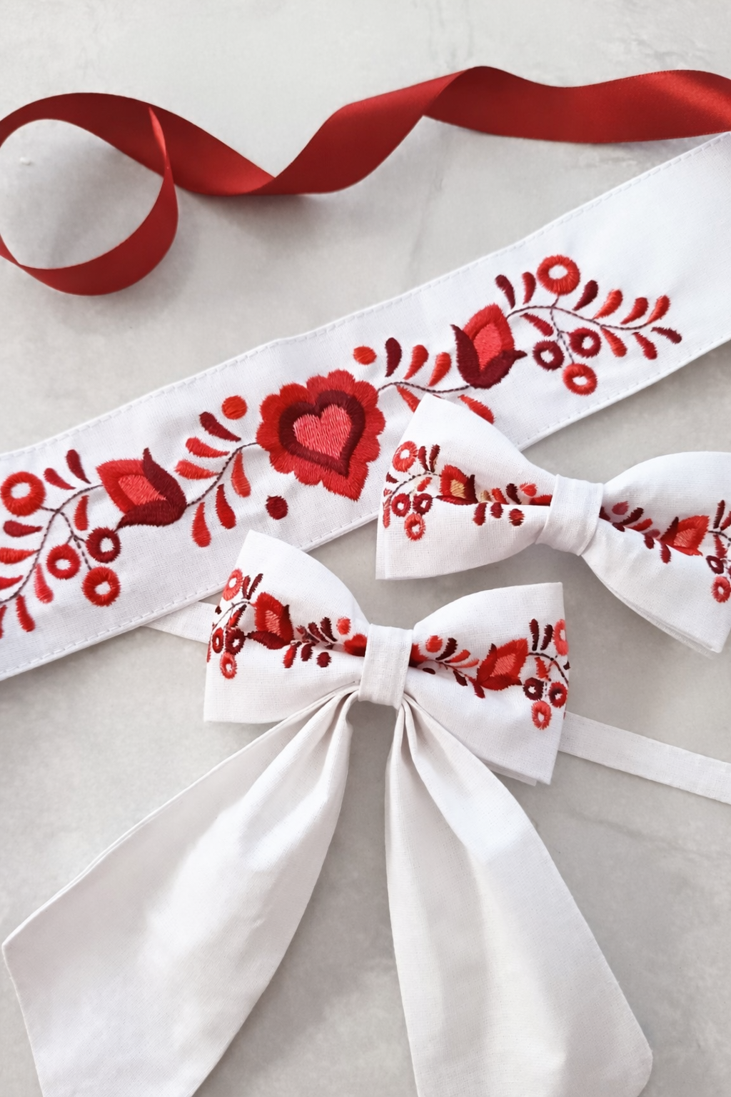 Set – folklórny vyšívaný opasok, dámska mašľa a pánsky motýlik – biely, modrý & malinový 59,00 € 0,00 €